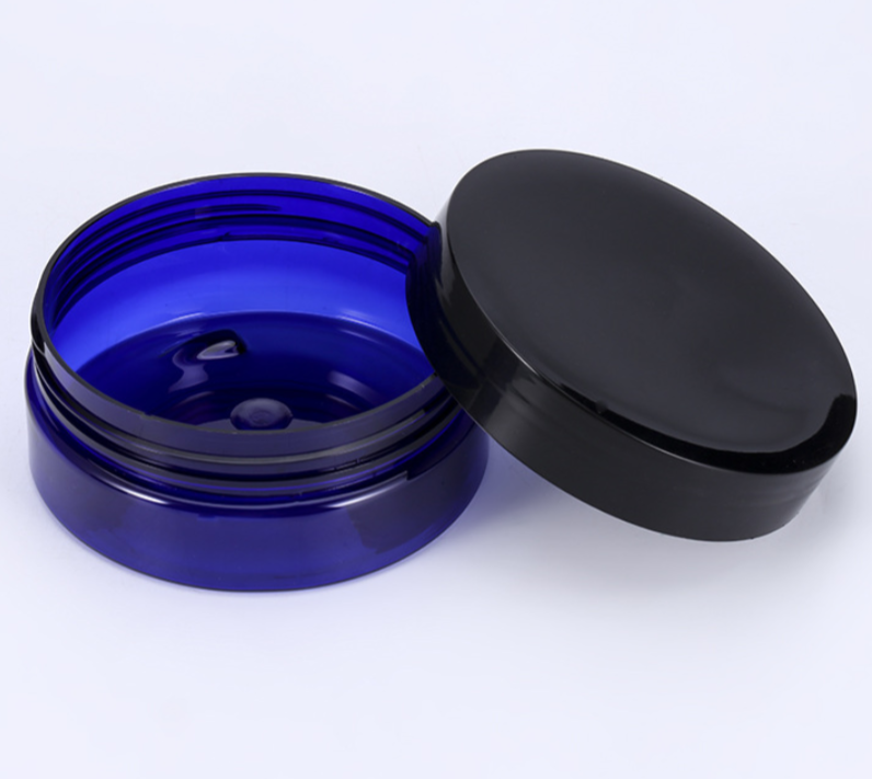 - 100ml Plastic PET blue jar in straight-sided shape