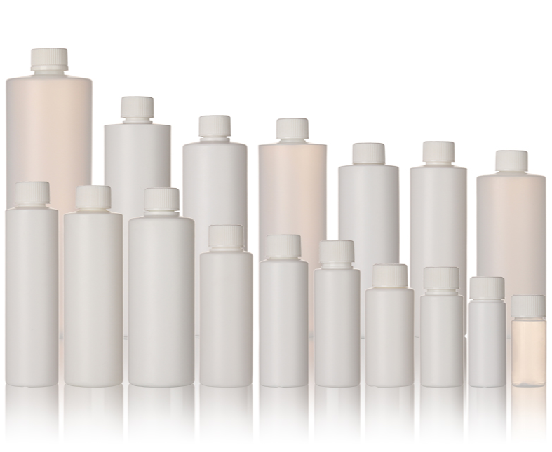 The cylinder bottle has a square shoulder and a square heel. Cylinder bottles are great for shampoos, personal care, cleaners, and many other applications.