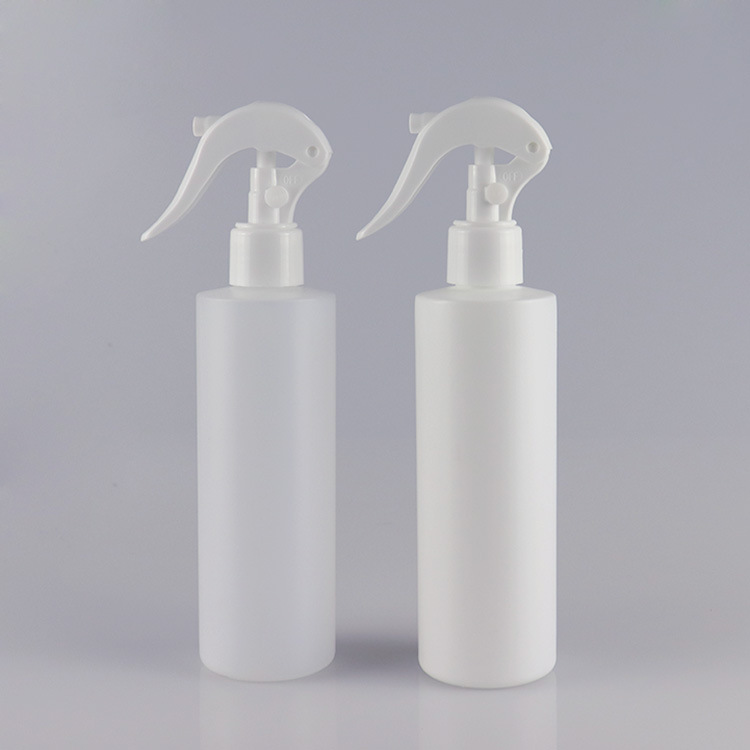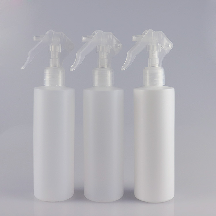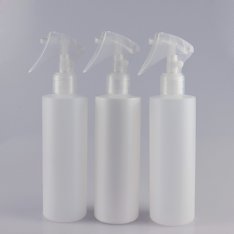 250ml 8oz HDPE Cylinder round bottle sharp straight shoulder with 24-410 trigger pump Item No.:FPE24-250-HS01 Neck:24-410 Volume: 250ml /8oz Material: HDPE Color:white,Color can be customed MOQ: 10000PCS