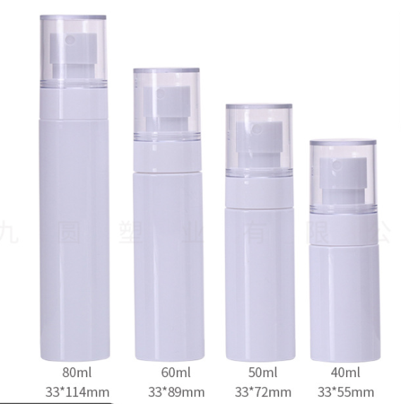 40ml 50ml 60ml 80ml white PET Cylinder bottle with mist sprayer