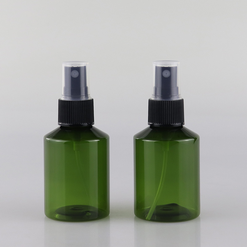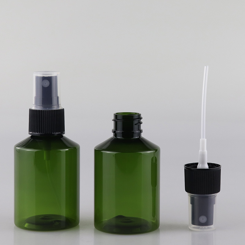 50ml 1.67oz round bottle with oblique shoulder with 24-410 mist sprayer Neck:24/410 Volume:50ml(family bottle:50ml,100ml,200ml and 500ml) MOQ: 10000PCS Color:Color can be customed Material: Food Grade PET
