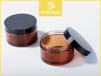 - 50ml Plastic PET amber jar in straight-sided shape.
